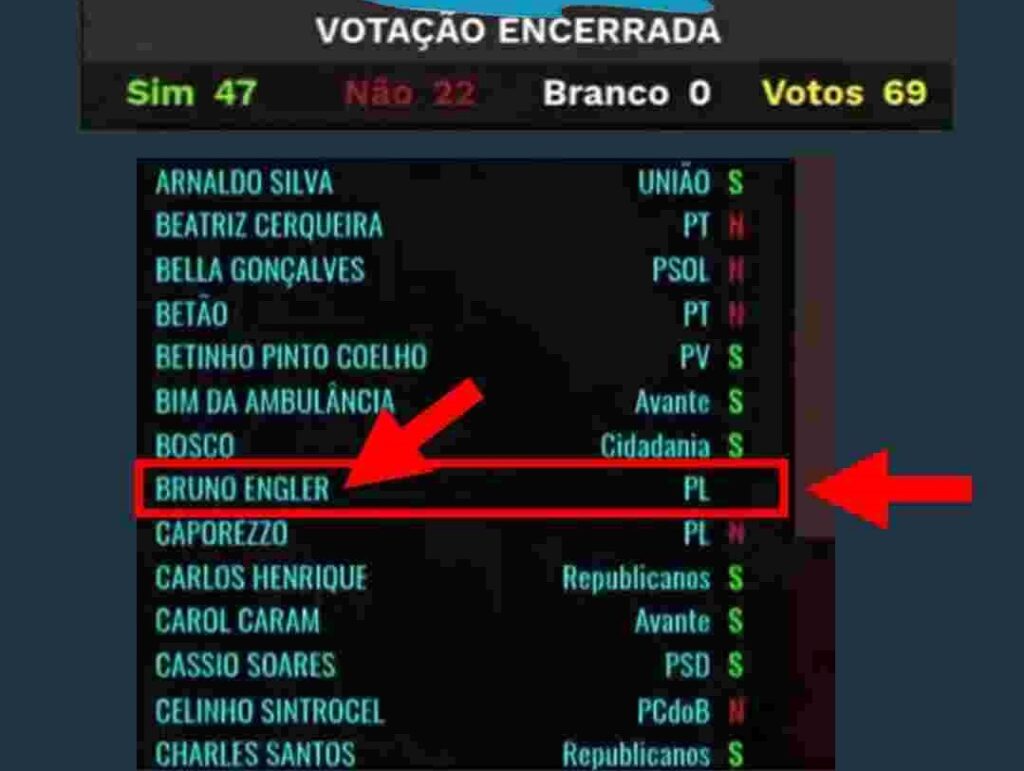 Percebendo que não tinha atingido o número mínimo de 48 votos para aprovação, o deputado Bruno Engler (PL) pediu para Tadeu Leite para registrar seu voto a favor da PEC do Cala-a-Boca.